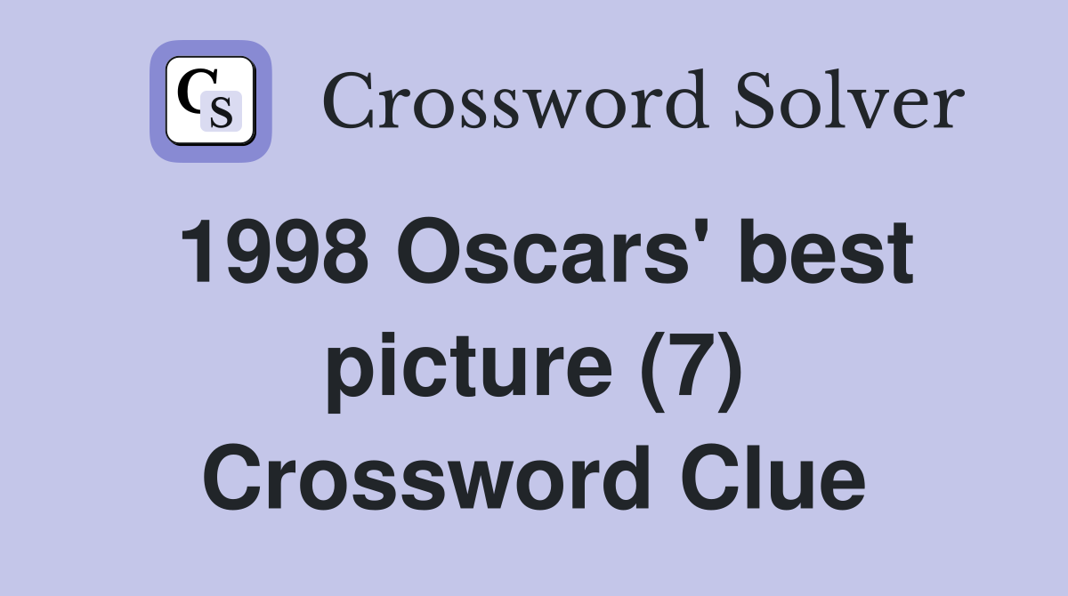 1998 Oscars #39 best picture (7) Crossword Clue Answers Crossword Solver