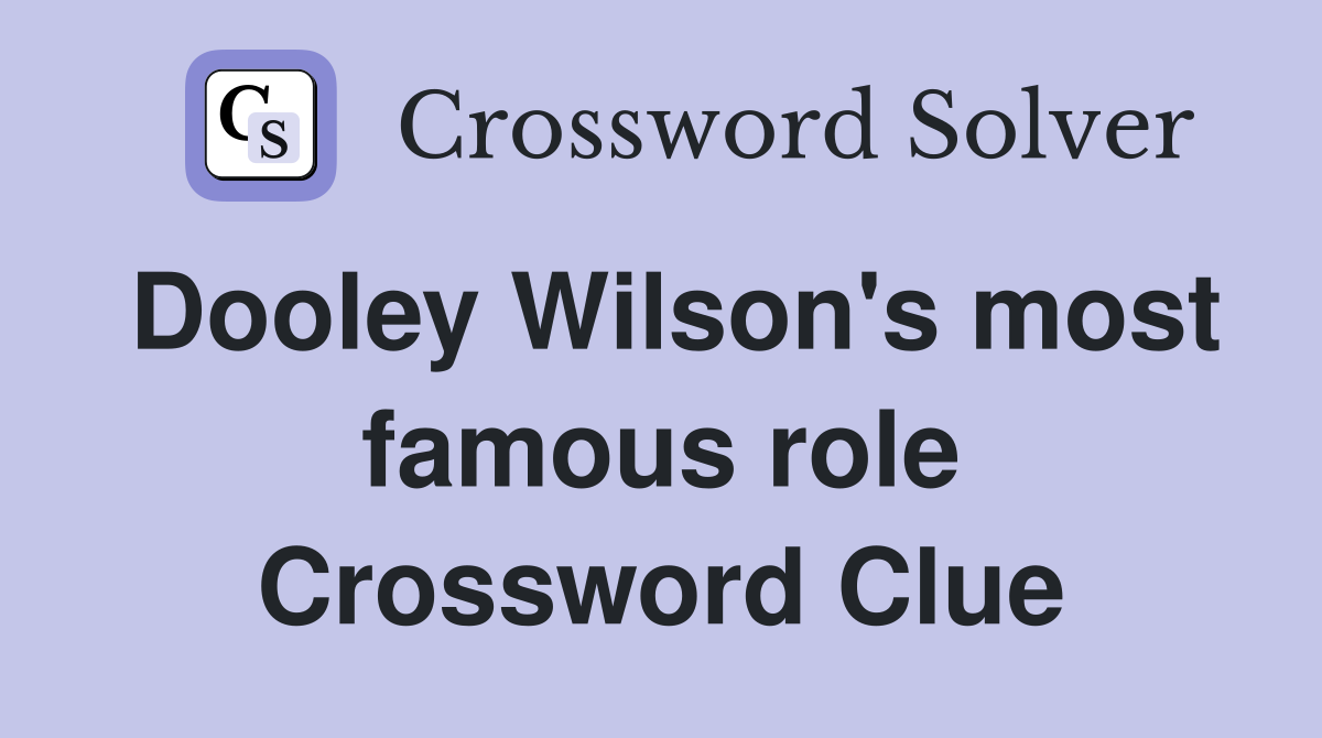 Dooley Wilson #39 s most famous role Crossword Clue Answers Crossword