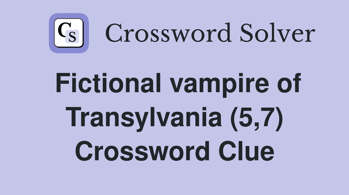 Fictional vampire of Transylvania (5 7) Crossword Clue Answers