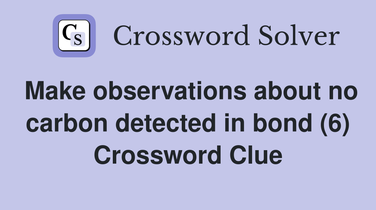 Make observations about no carbon detected in bond (6) Crossword Clue