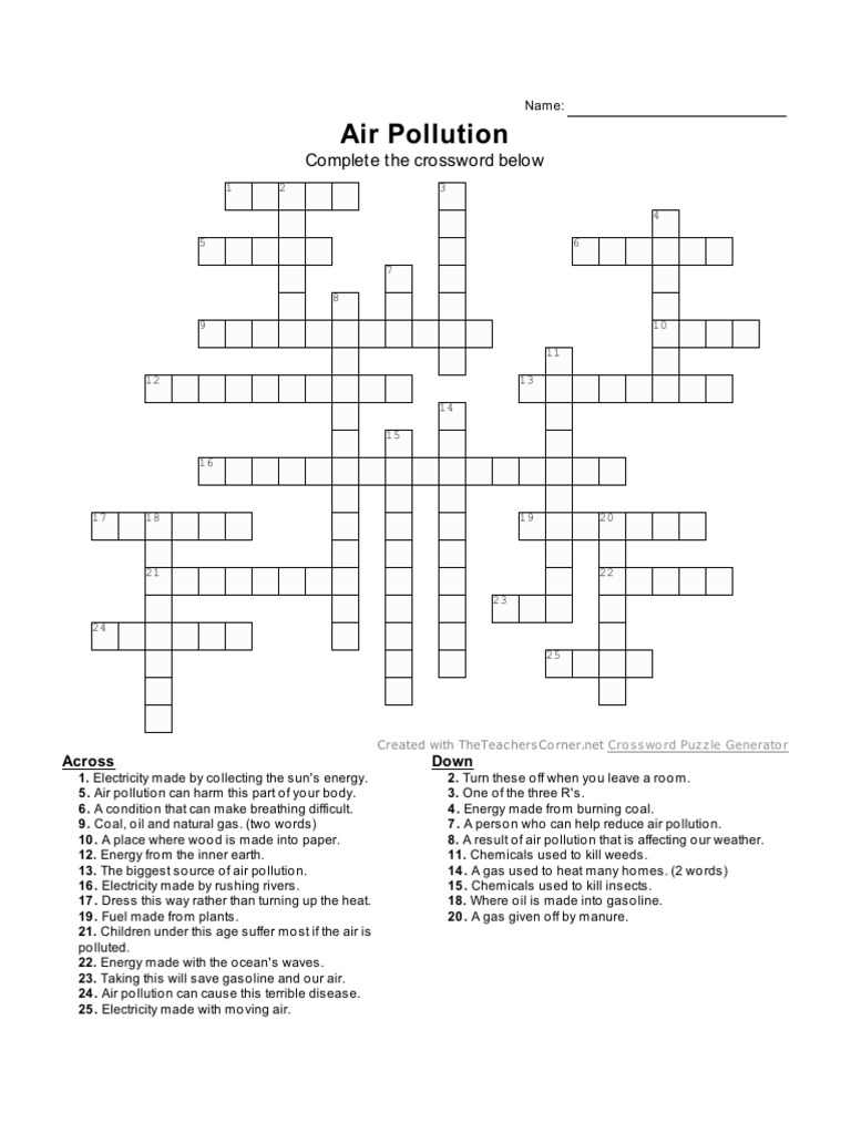 Air Pollution: Complete The Crossword Below PDF Environmental