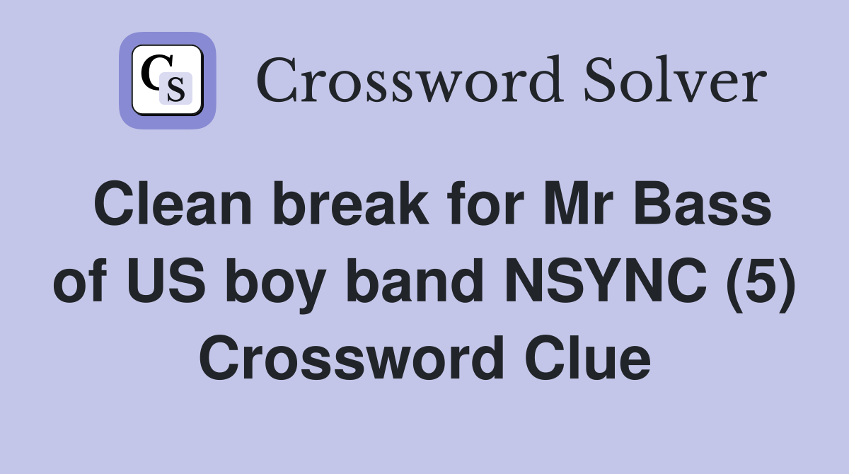 Clean break for Mr Bass of US boy band NSYNC (5) Crossword Clue