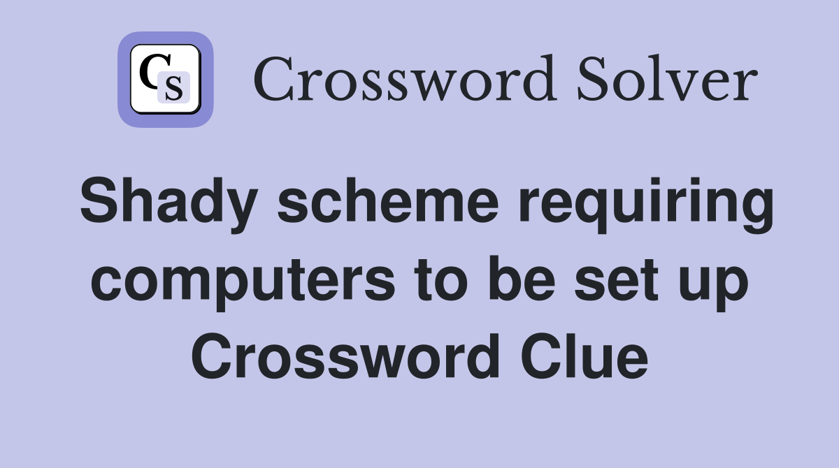 Shady scheme requiring computers to be set up Crossword Clue Answers