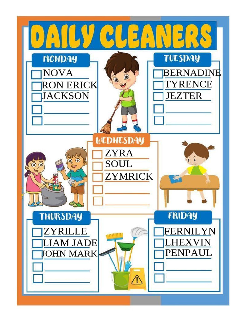 Deped classroom cleaners of the day chart Artofit