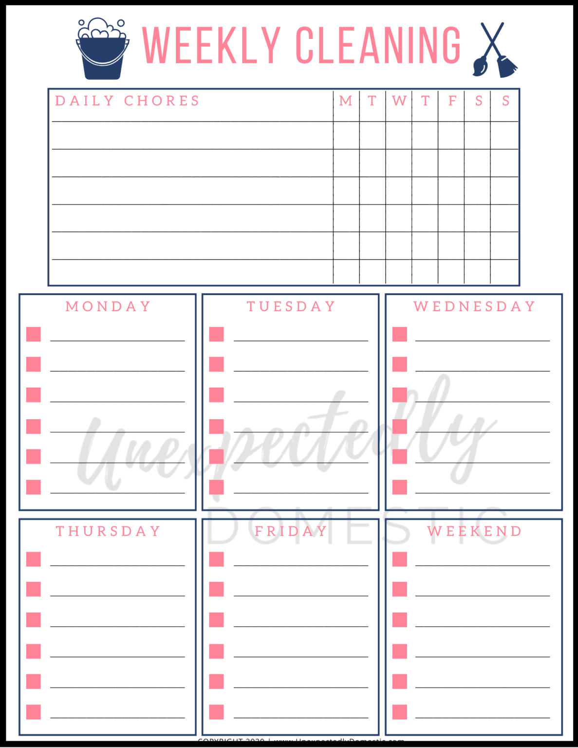 Weekly Cleaning Checklist Instant Download PDF Chore Chart Template
