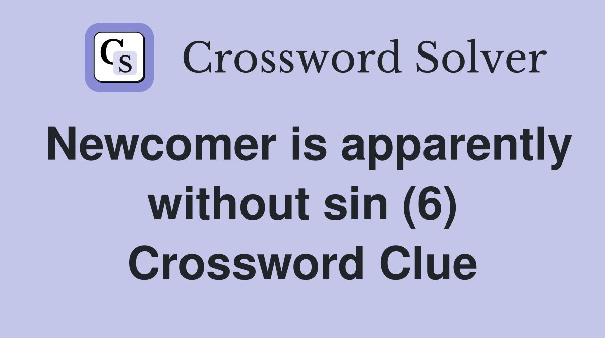 Newcomer is apparently without sin (6) Crossword Clue Answers