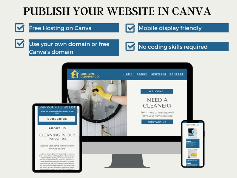 Cleaning Company Website Canva Cleaning Business Website Template