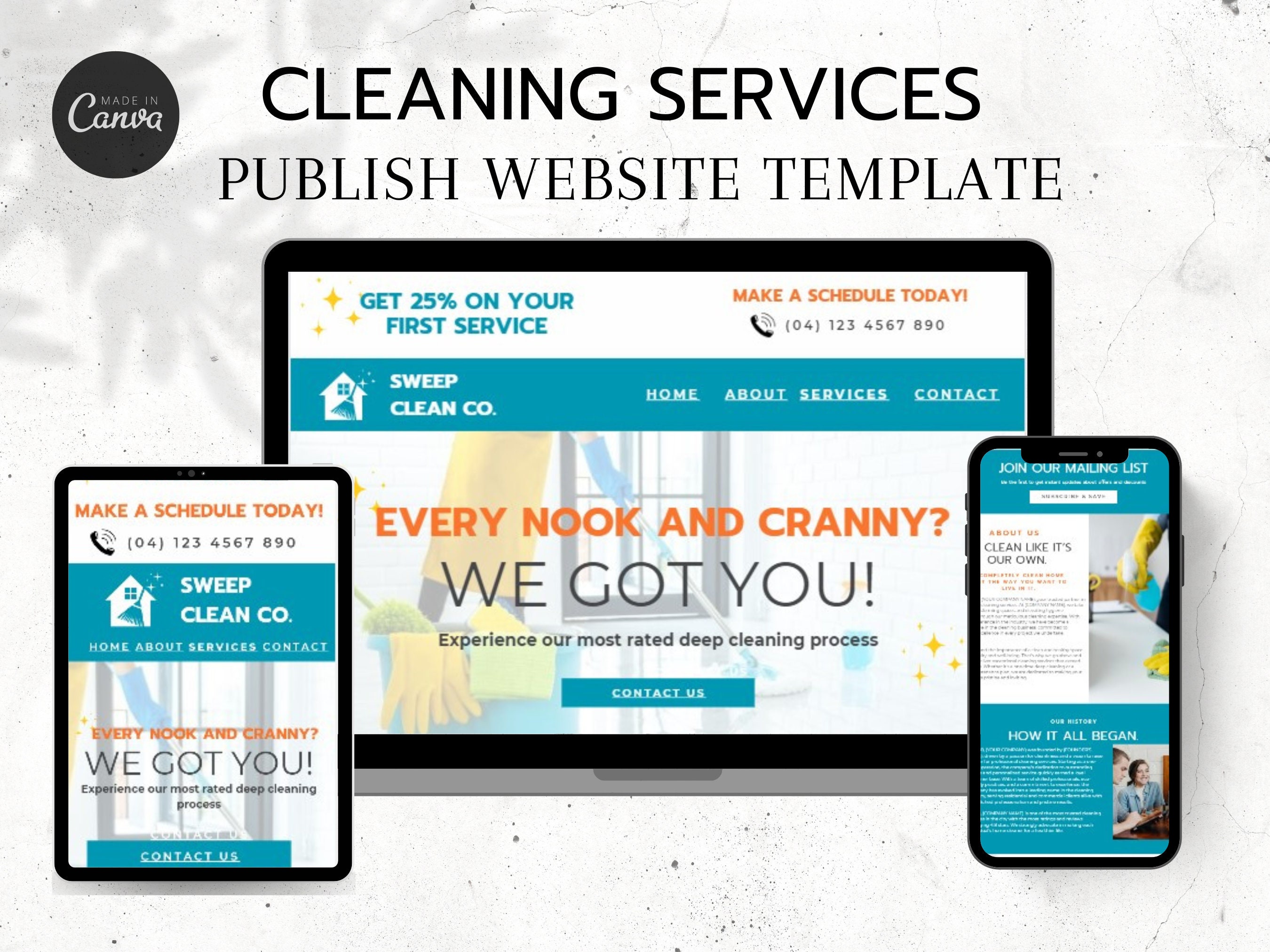 Cleaning Website Template Editable Canva Website Design for Commercial