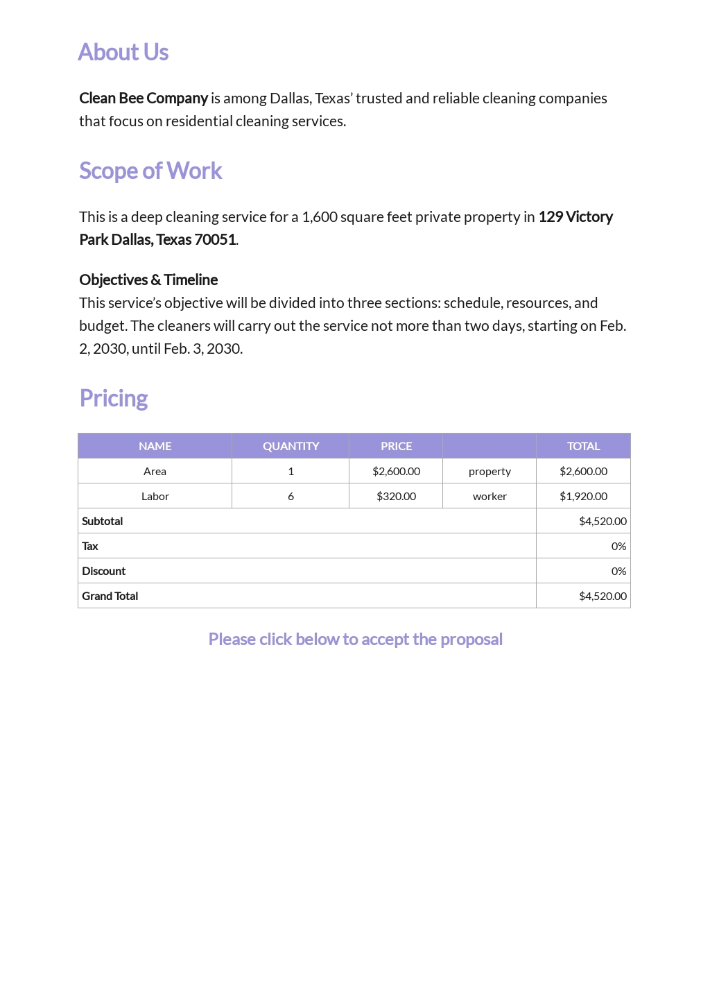 Pdf Printable Free Cleaning Proposal Template Printable Templates Free