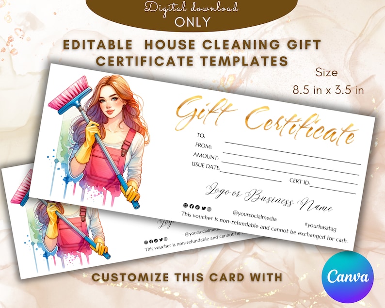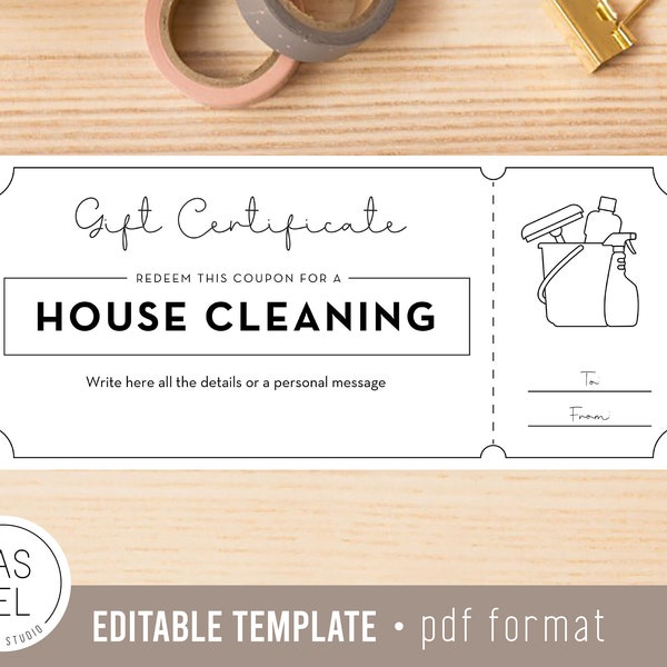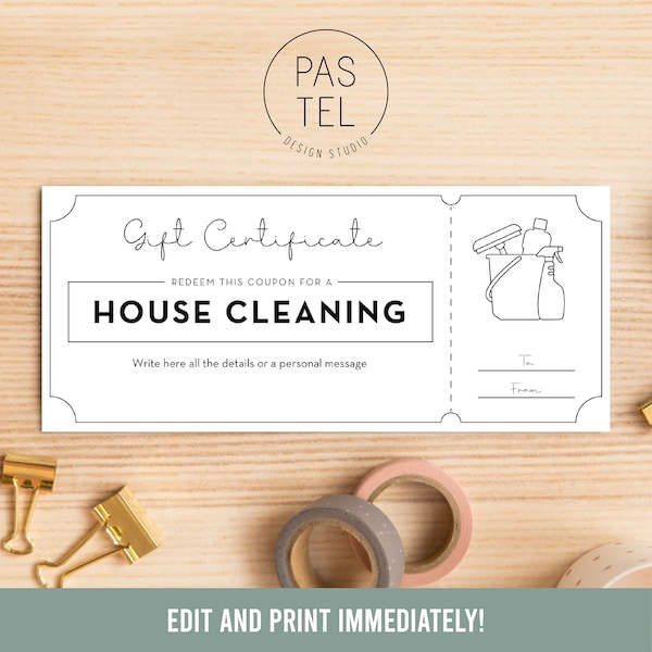 House Cleaning Gift Certificate EDITABLE Cleaning Voucher Printable