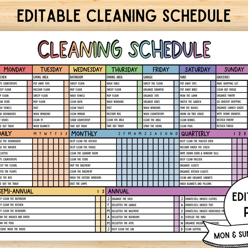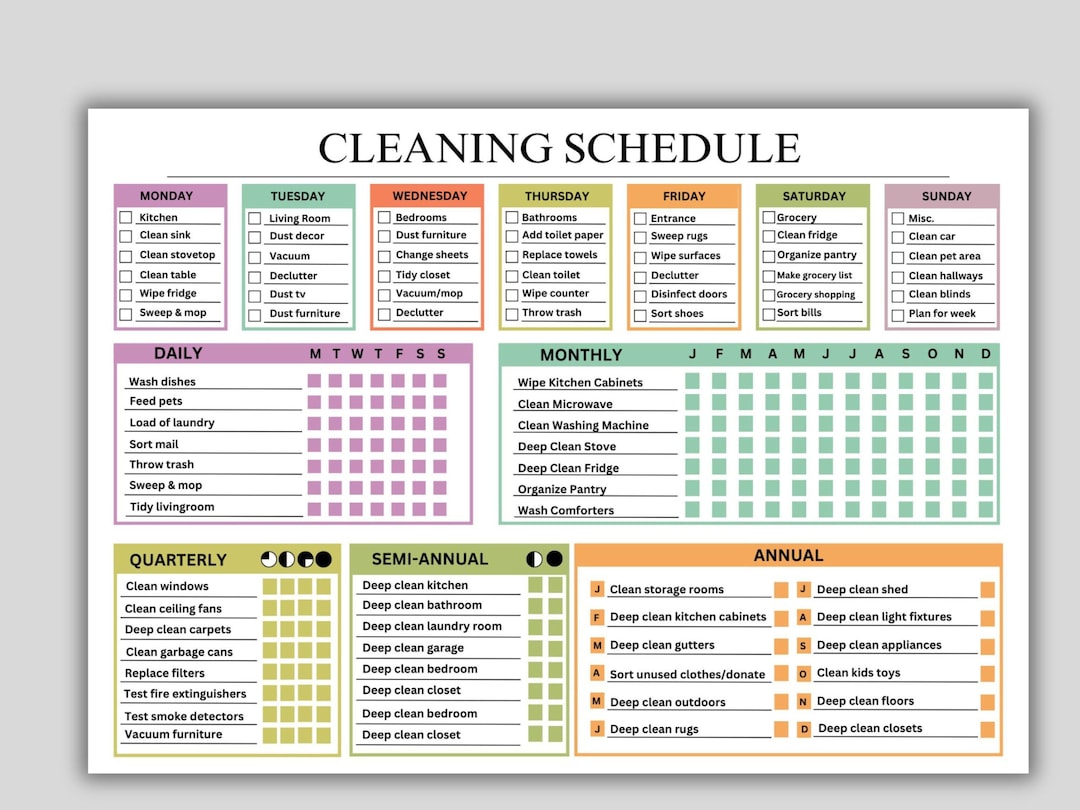 Cleaning Schedule Daily Weekly Monthly Quarterly Etsy