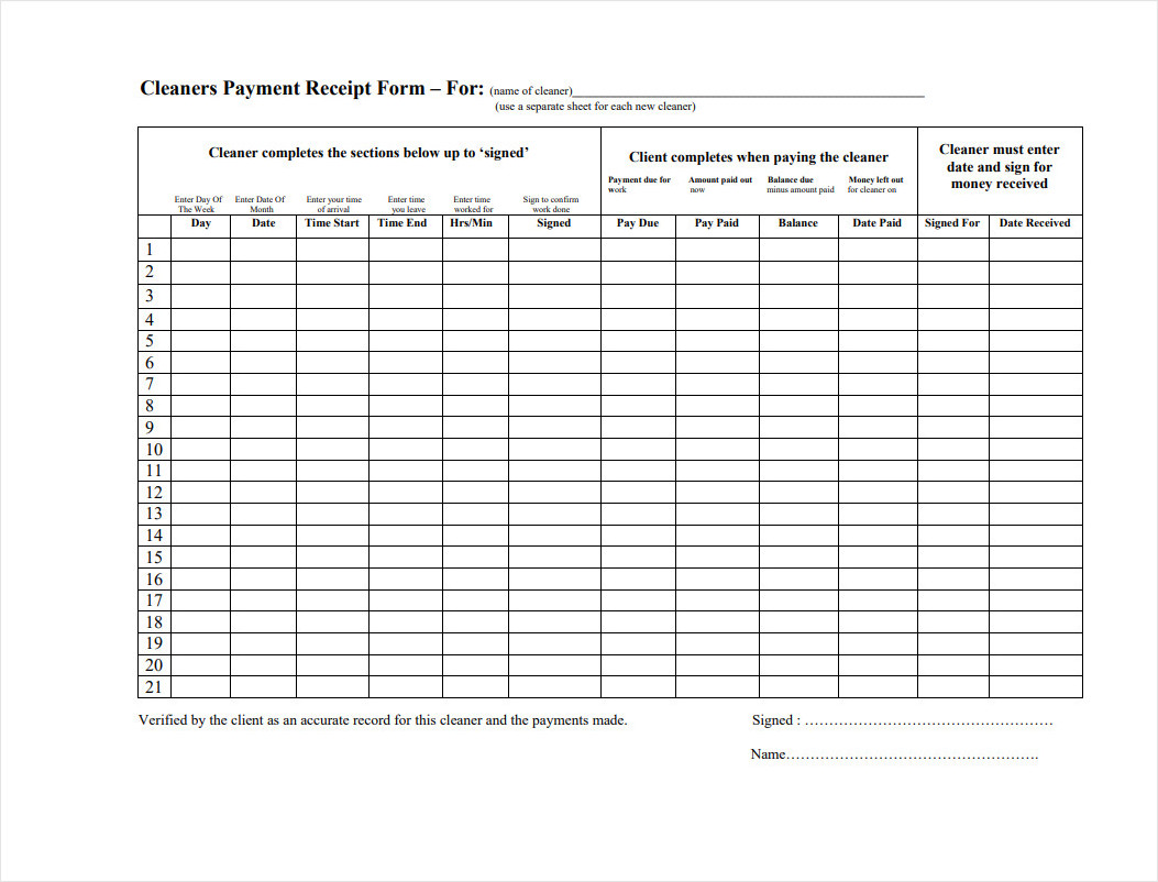 Free Cleaning Receipt Template docelf com