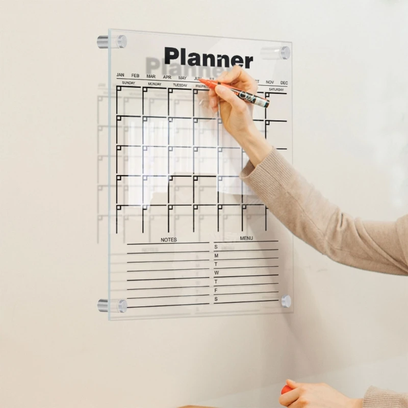 Clear Acrylic Wall Calendar Magnetic Glass Whiteboard Calendars Menu