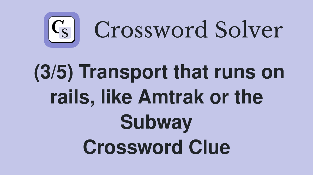 (3/5) Transport that runs on rails like Amtrak or the Subway