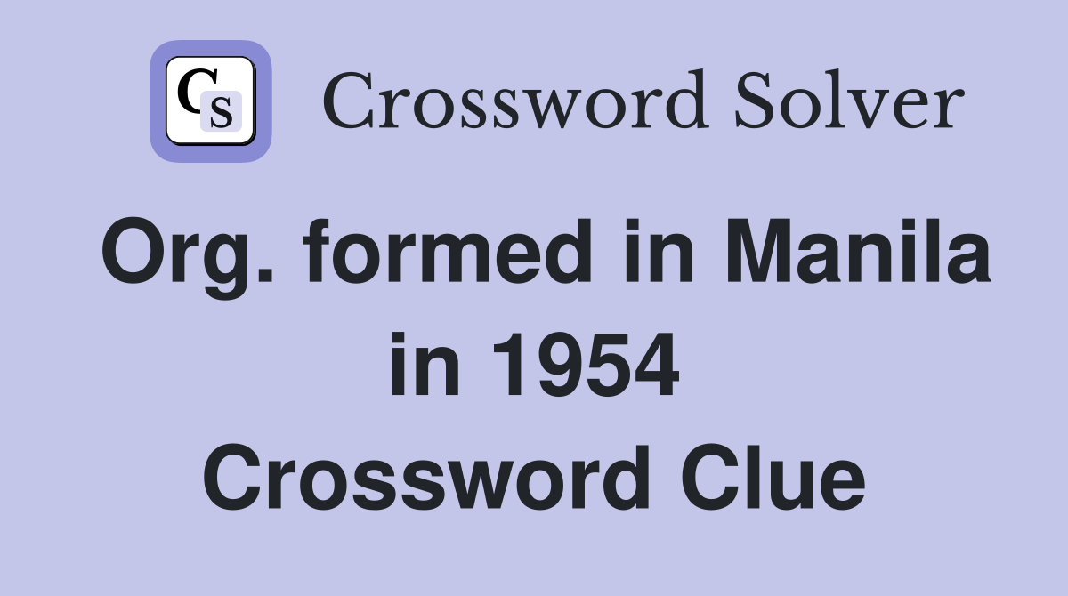 Org formed in Manila in 1954 Crossword Clue Answers Crossword Solver