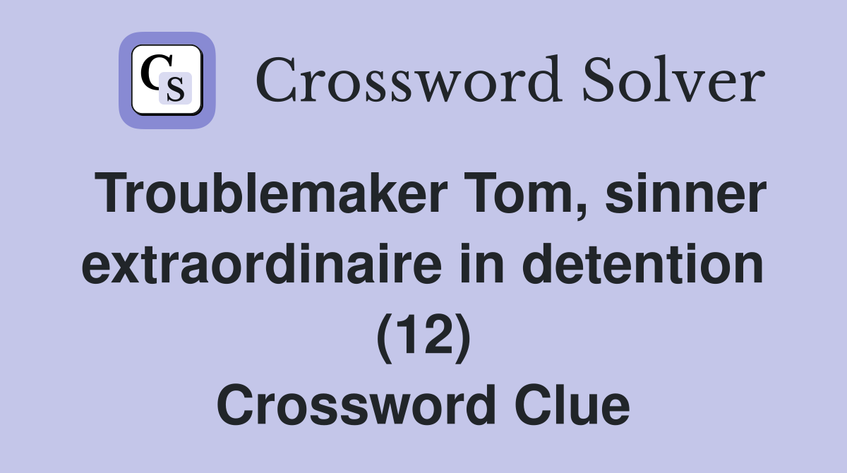 Troublemaker Tom sinner extraordinaire in detention (12) Crossword