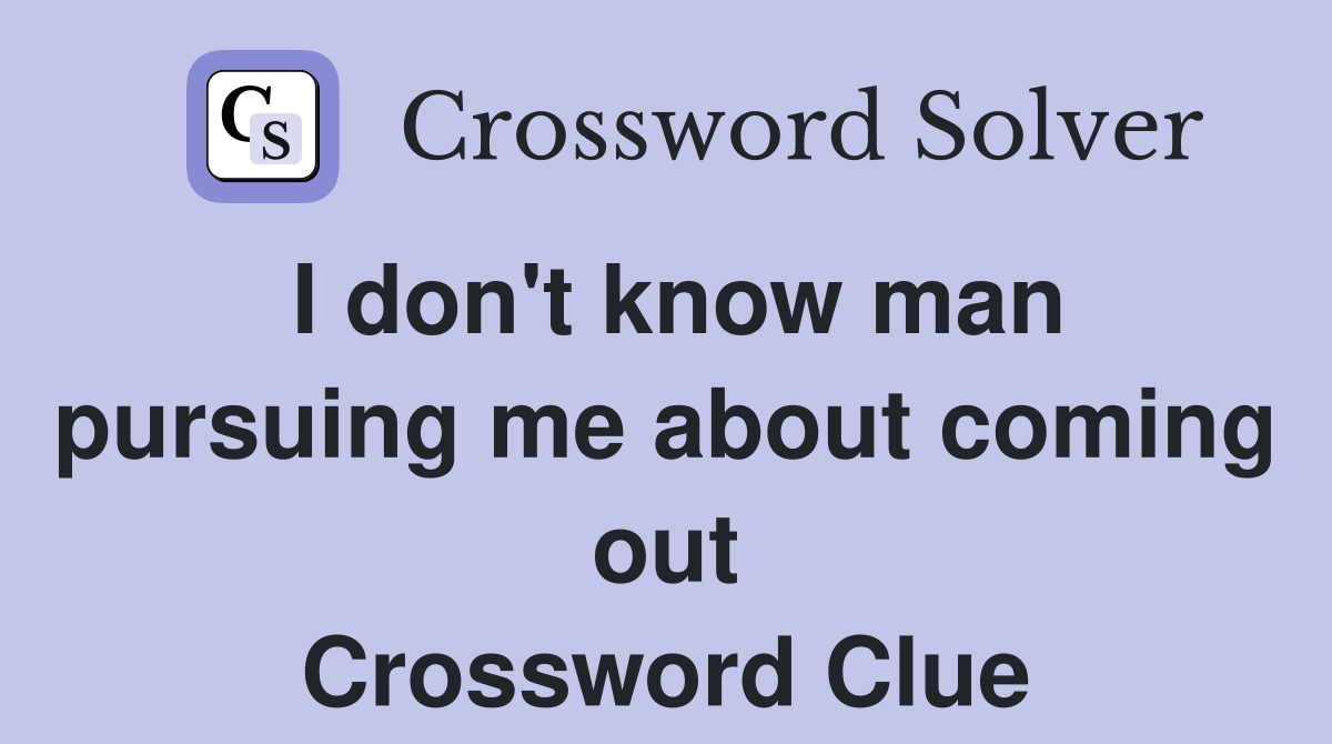 I don #39 t know man pursuing me about coming out Crossword Clue Answers