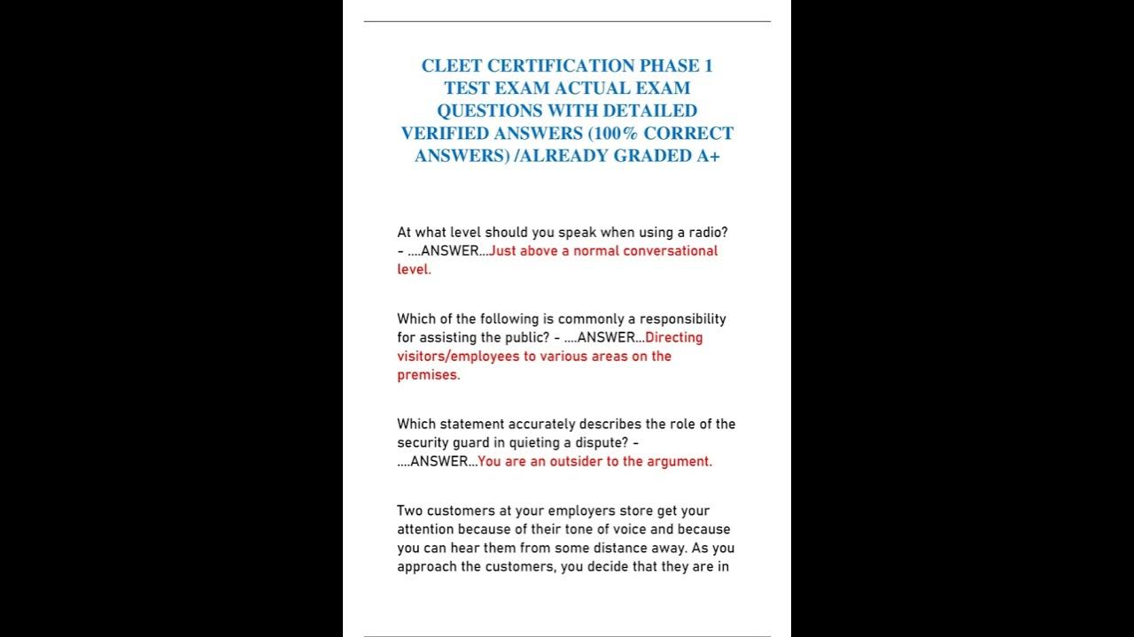 CLEET PHASE 1 AND PHASE 2 CERTIFICATION TEST NEWEST WITH COMPLETE