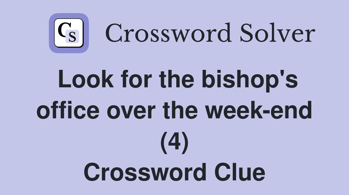 Look for the bishop #39 s office over the week end (4) Crossword Clue