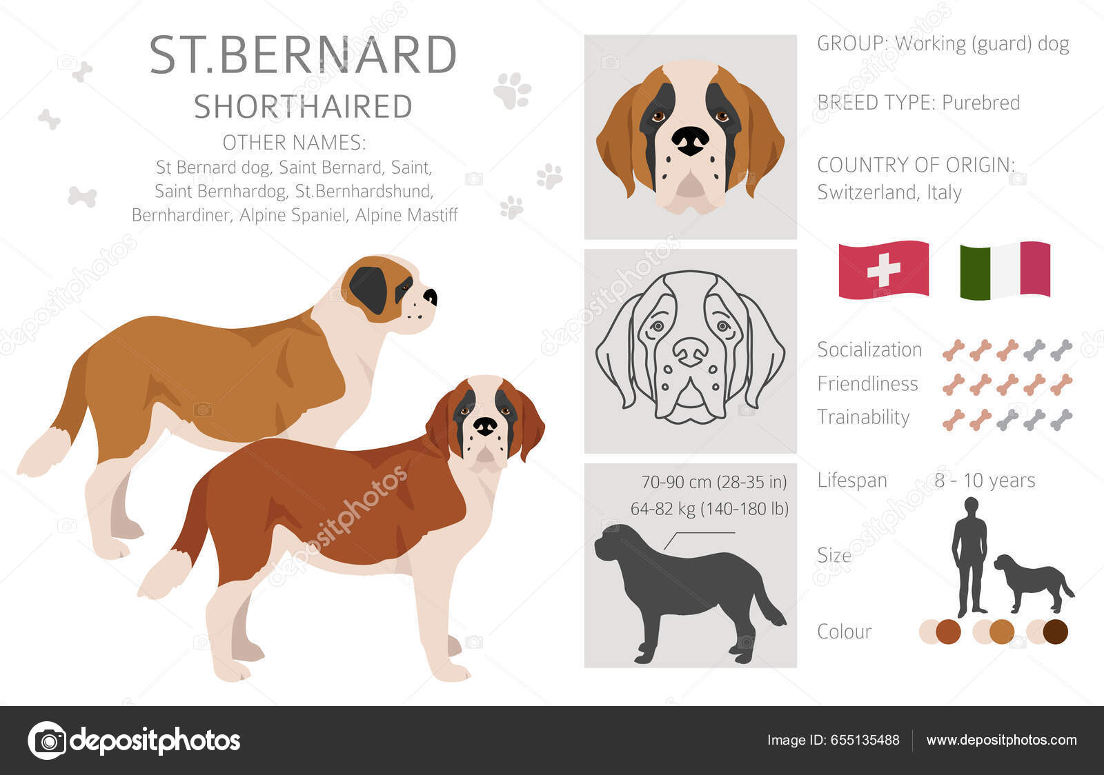 Image vectorielle Manteau Poil Court Bernard Couleurs Différentes Poses