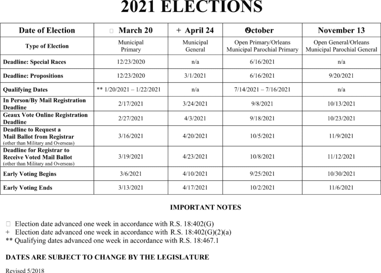 Election Dates Washington Parish Clerk of Court