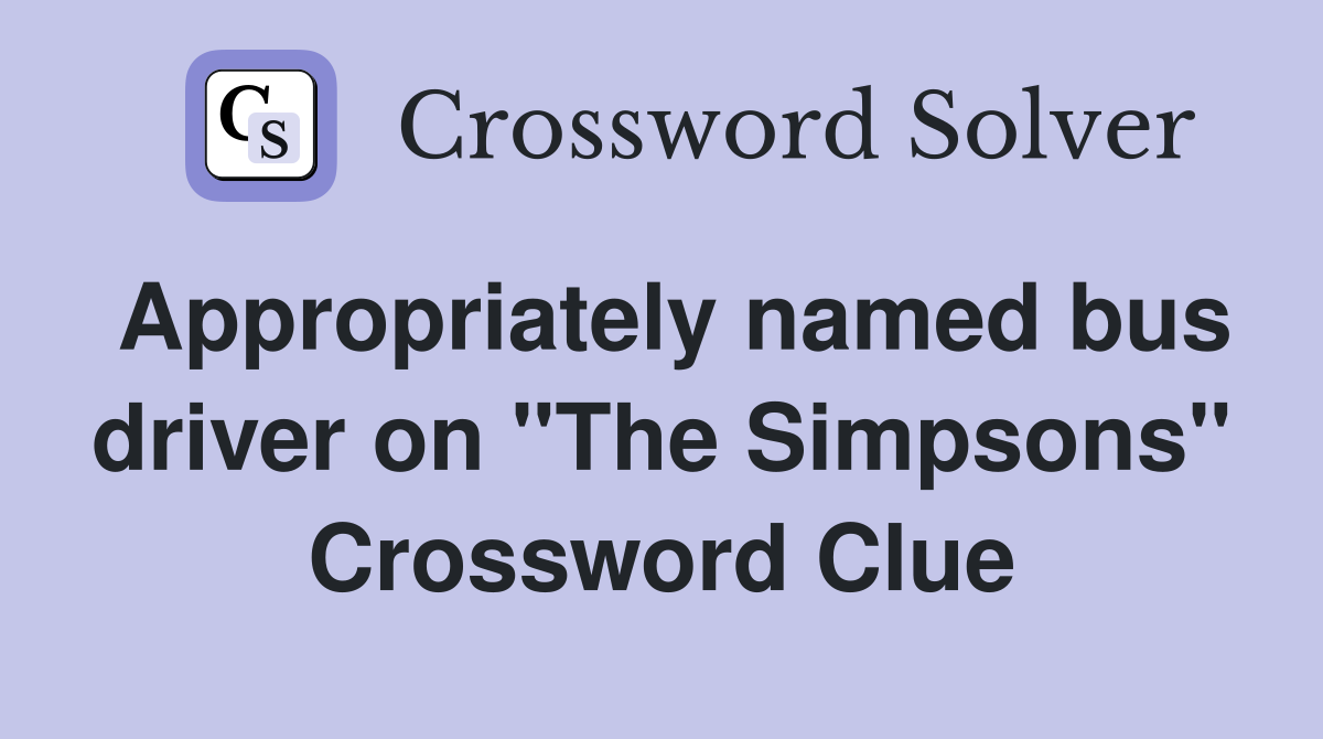 Appropriately named bus driver on quot The Simpsons quot Crossword Clue