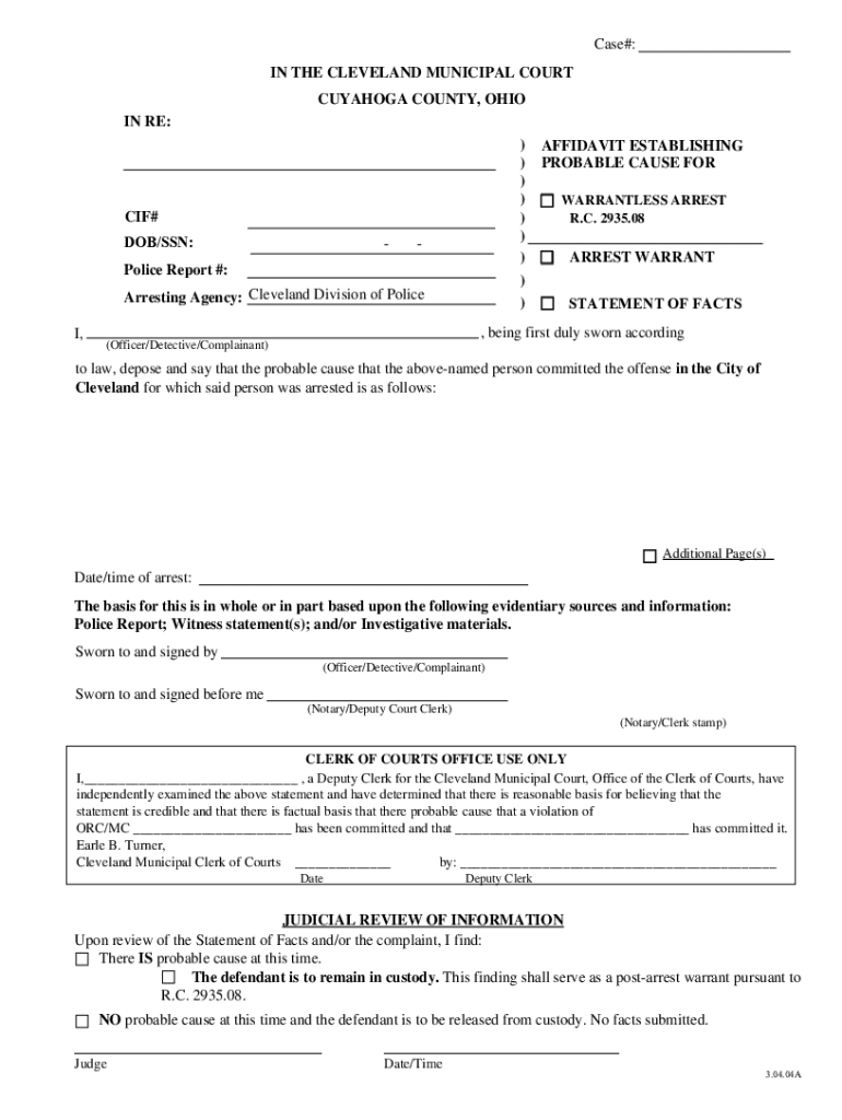 Fillable Online Fillable Online Case#: IN THE CLEVELAND MUNICIPAL COURT