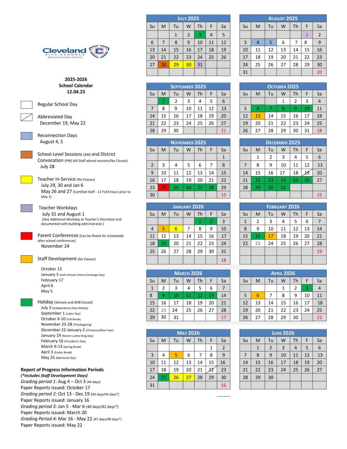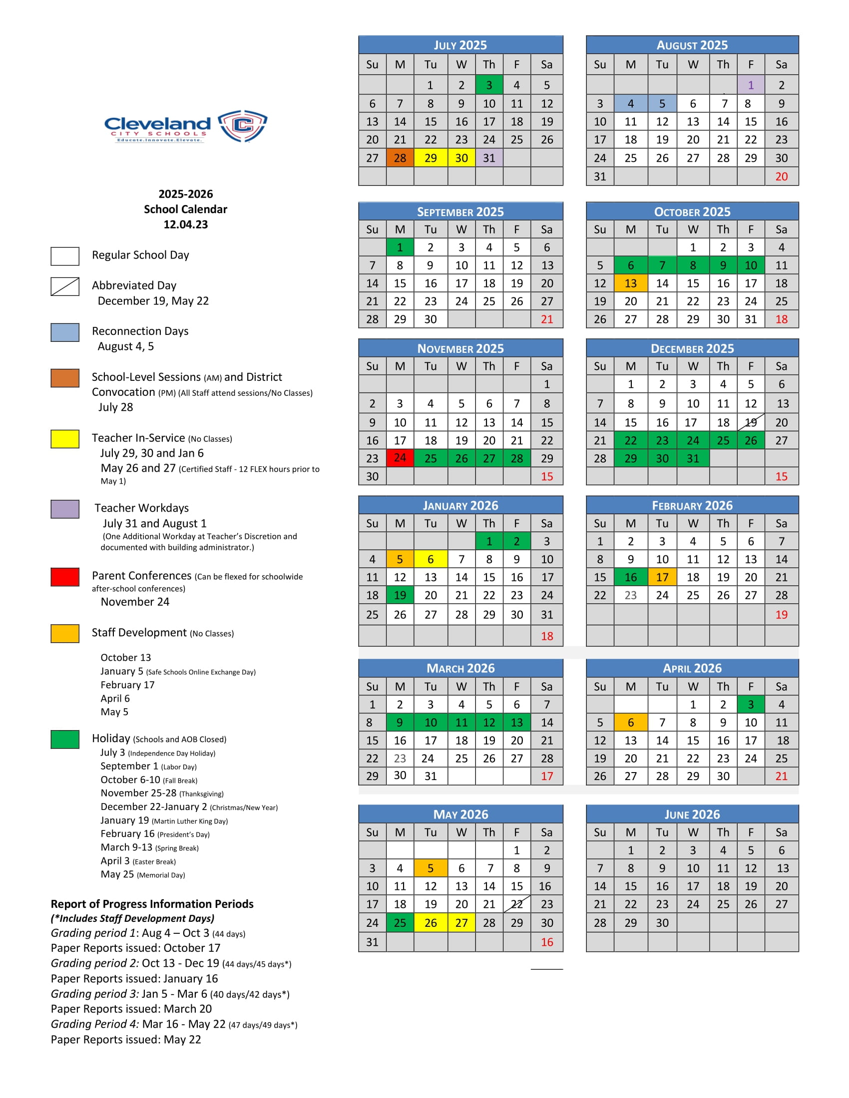 Cleveland City School Calendar 25 26 Revised PDF EduCounty