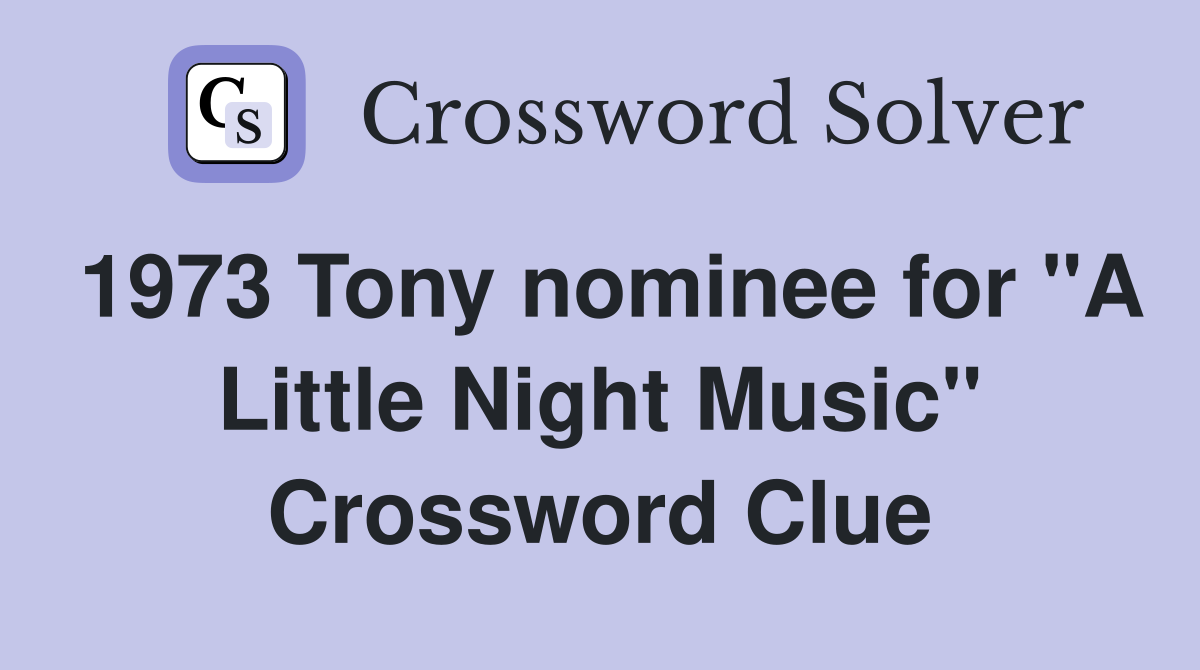 1973 Tony nominee for quot A Little Night Music quot Crossword Clue Answers