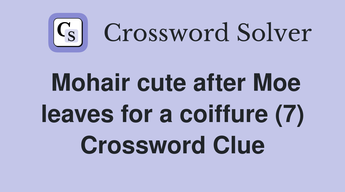 Mohair cute after Moe leaves for a coiffure (7) Crossword Clue