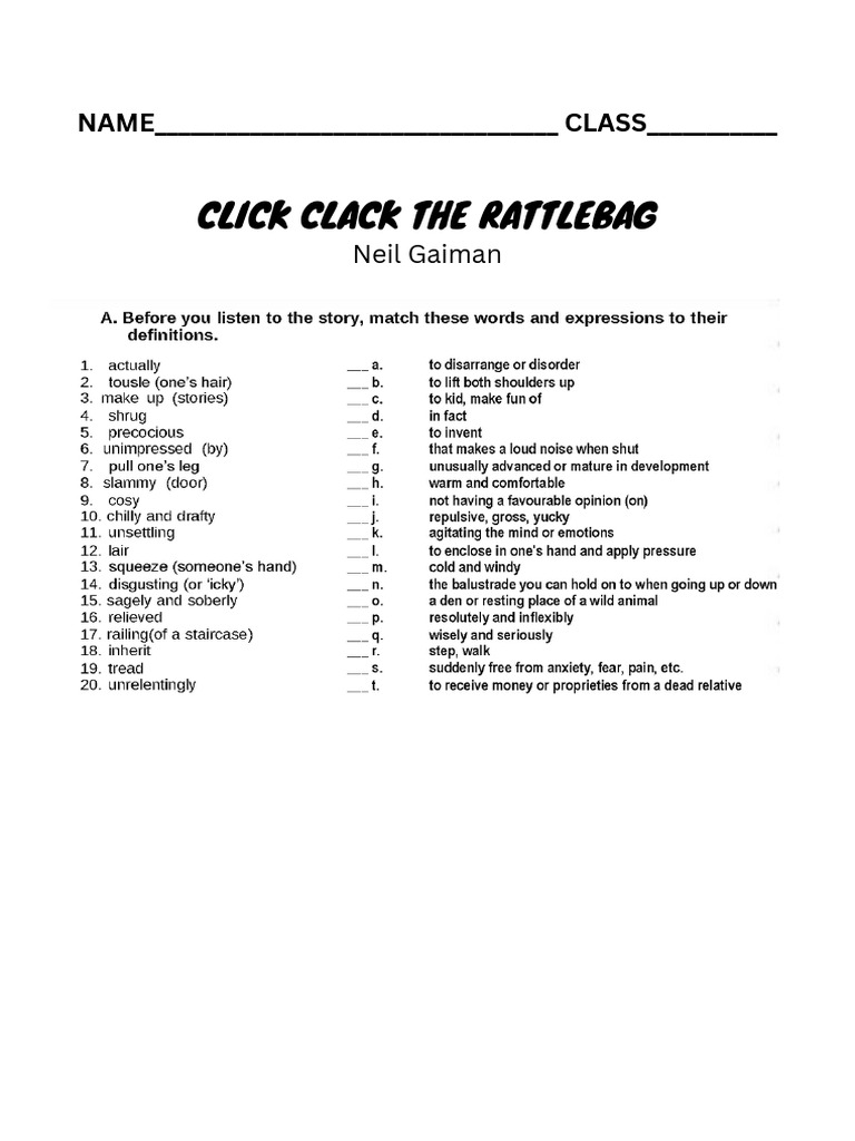 Neil Gaiman quot Click Clack the Rattlebag quot worksheets Made By Teachers