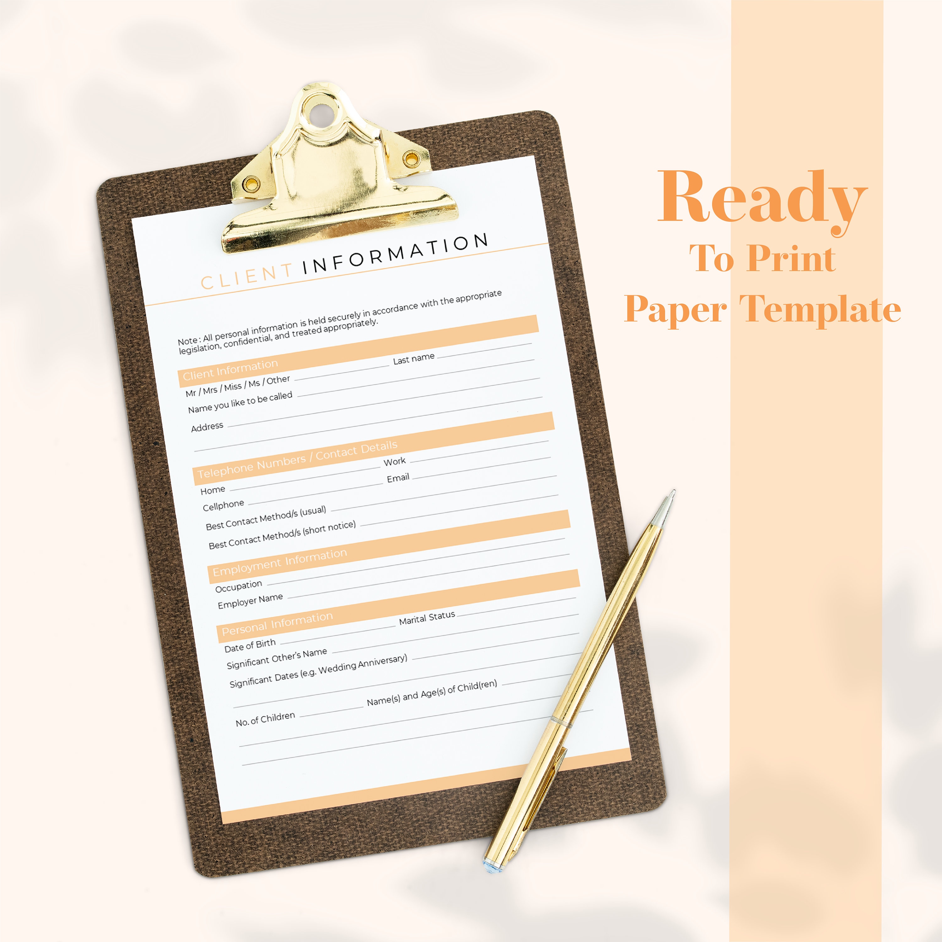 Client Information Printable PDF A4 A5 US Letter 8x10