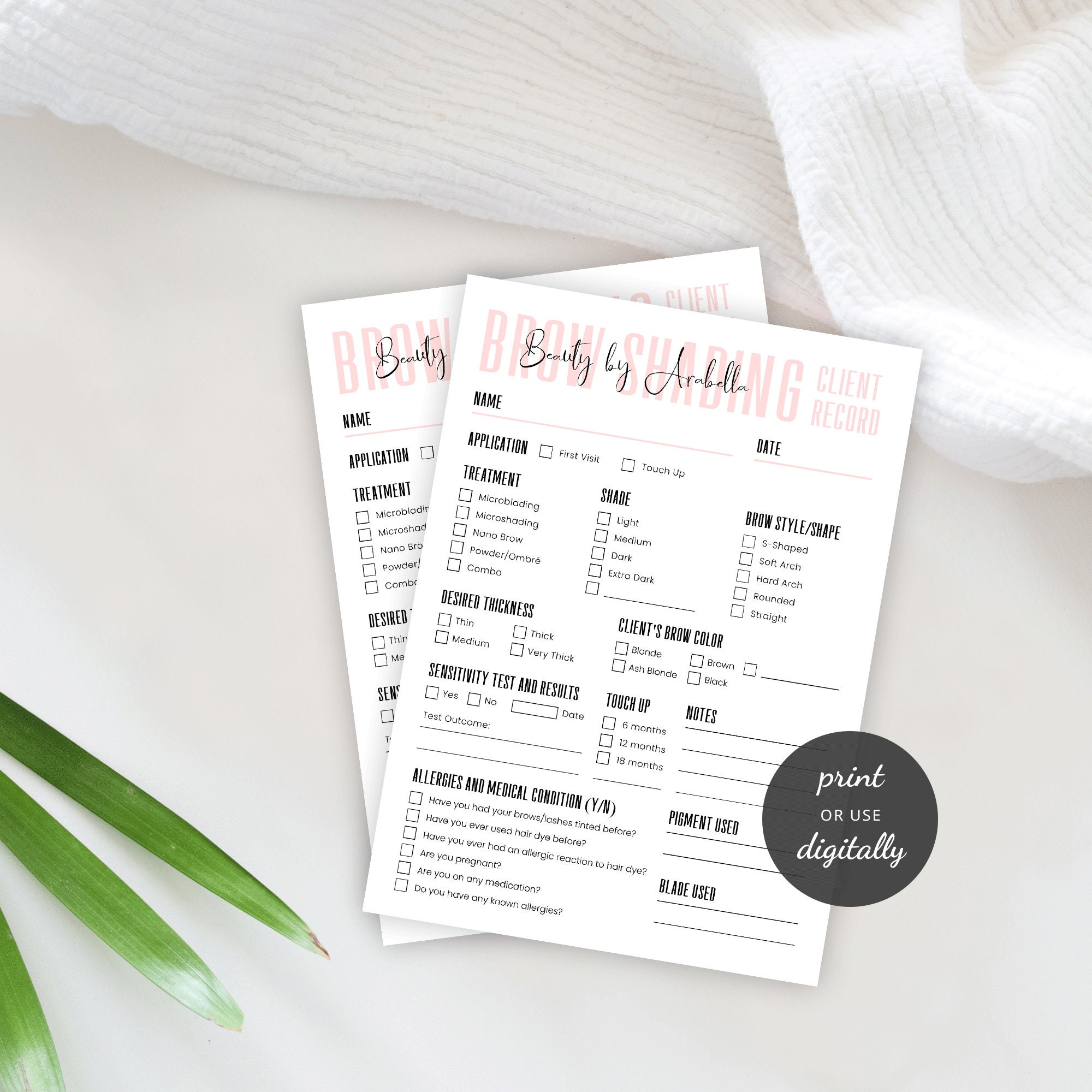 Editable Brow Client Record Template Printable Brows Etsy Canada