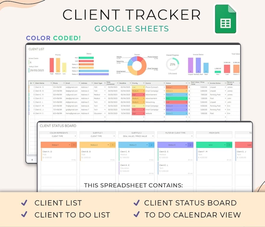 Client Tracker Google Sheets Template Client Management Spreadsheet