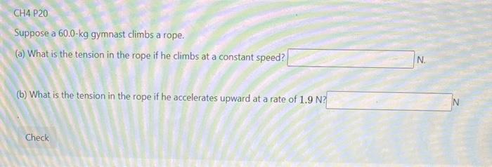 Solved CH4 P20 Suppose a 62 0 kg gymnast climbs a rope (a) Chegg com