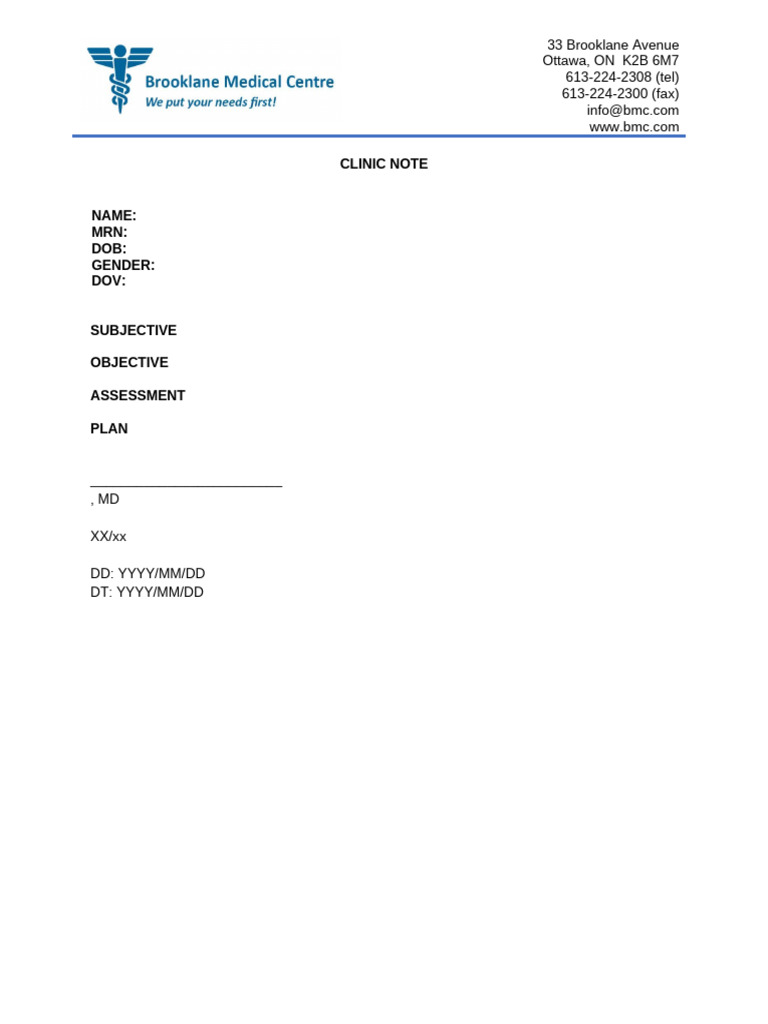 Clinic Note Template PDF