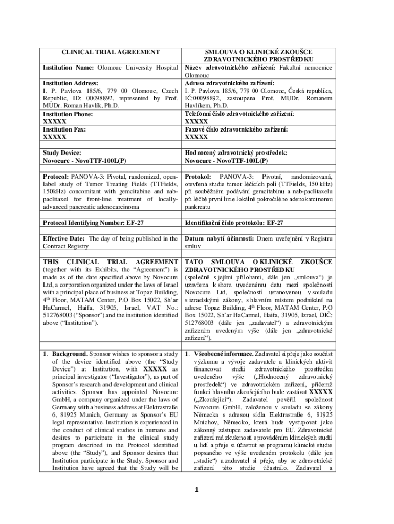 Template Clinical Trial Agreement Doc Template pdfFiller