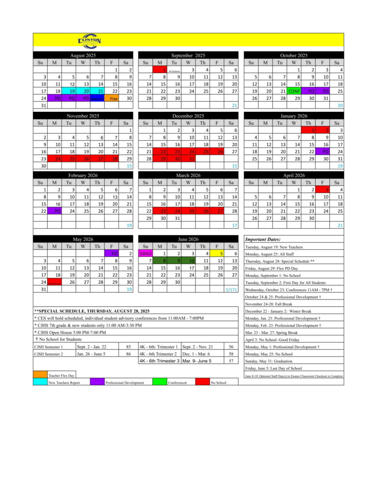 2025 26 Academic Calendar Clinton Public Schools