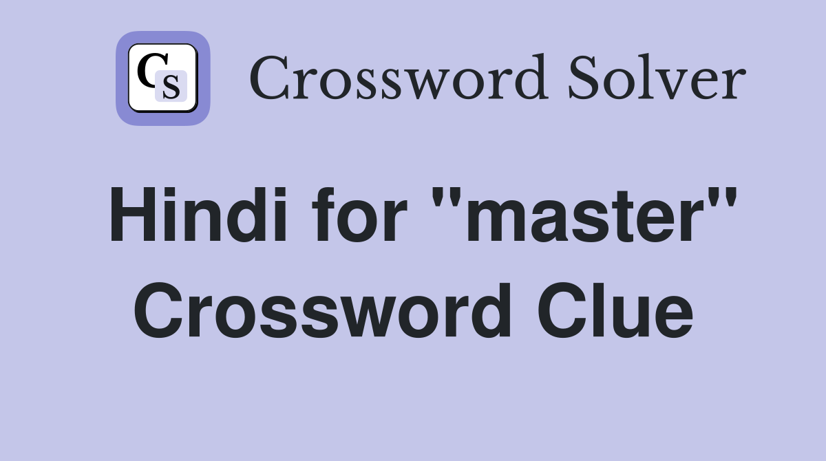 Hindi for quot master quot Crossword Clue Answers Crossword Solver
