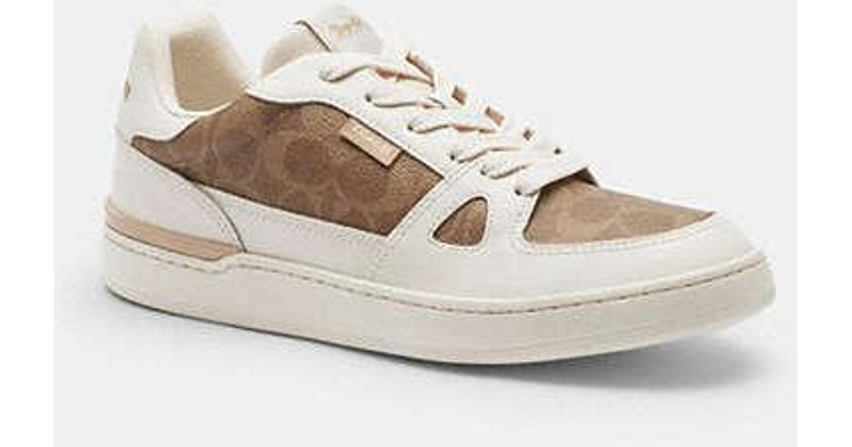 Coach Clip Court Low Top Sneaker In Signature Canvas Khaki/Chalk
