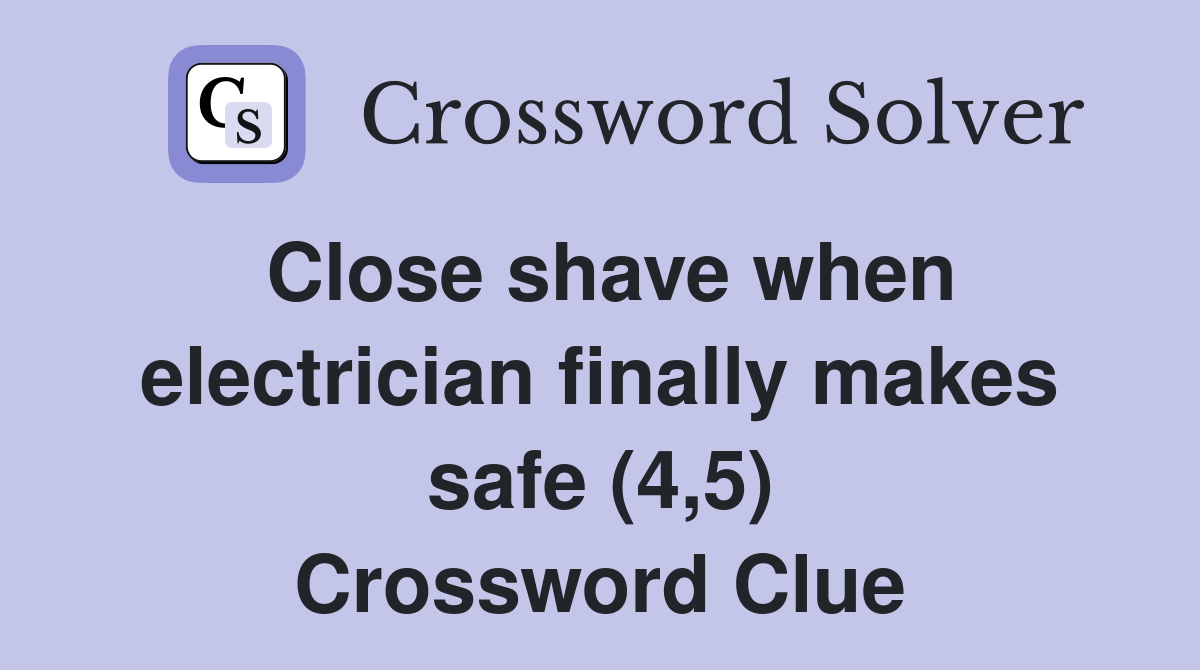Close shave when electrician finally makes safe (4 5) Crossword Clue