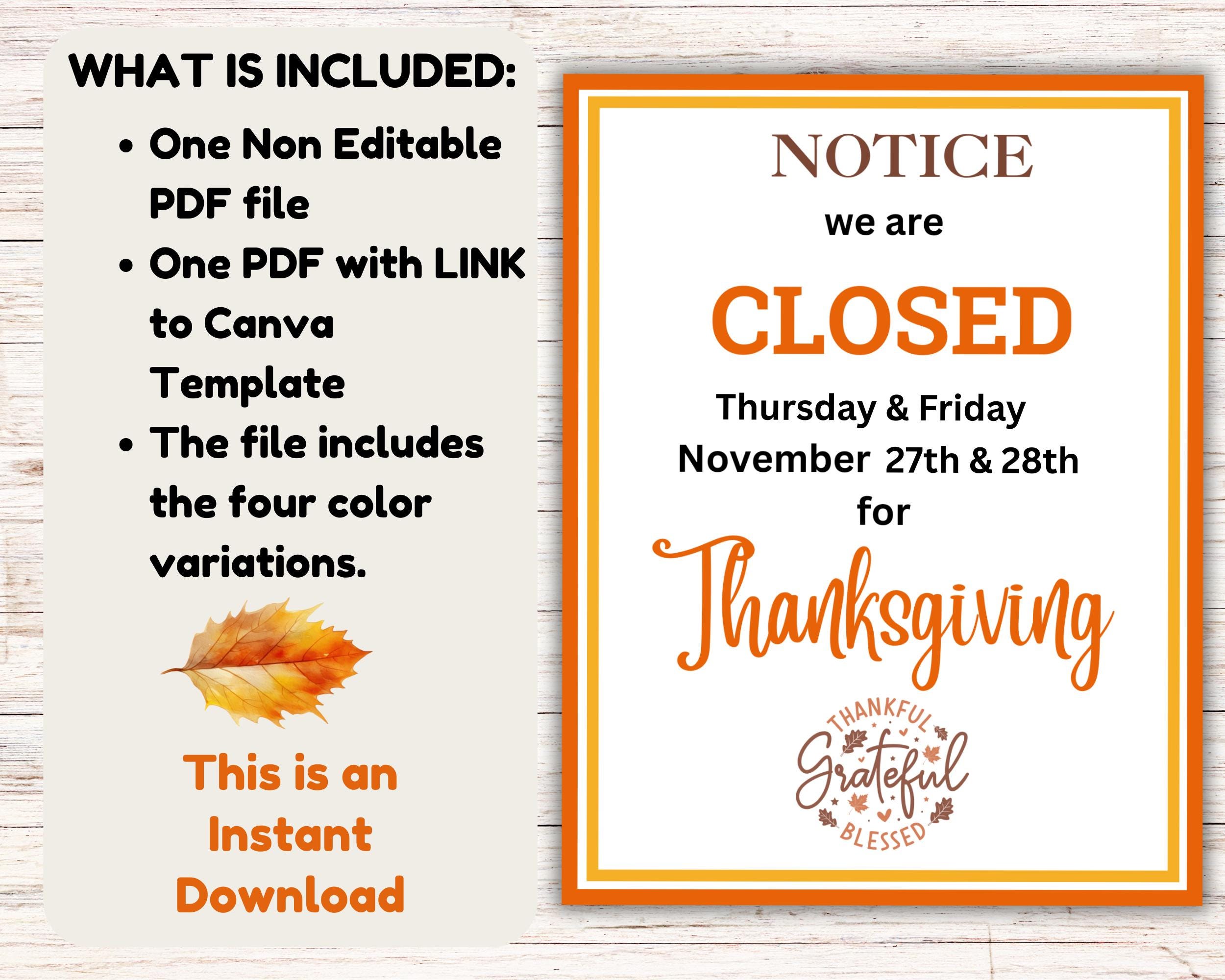 Free Printable Closed for Thanksgiving Signs (7 Templates) The