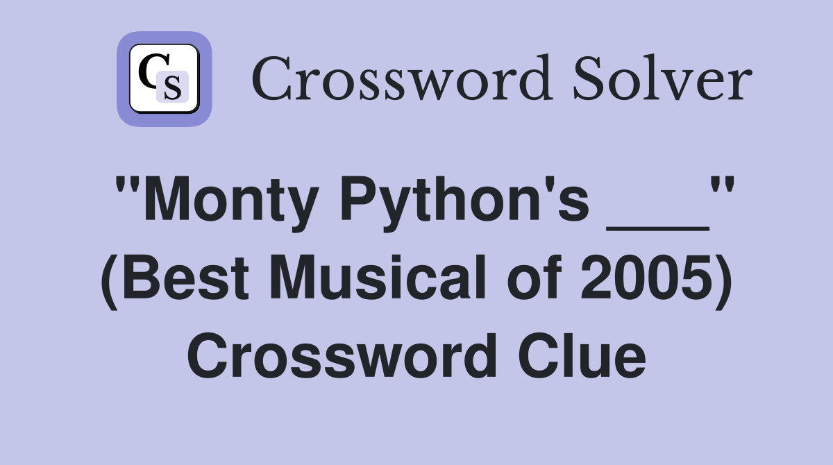 quot Monty Python #39 s quot (Best Musical of 2005) Crossword Clue Answers