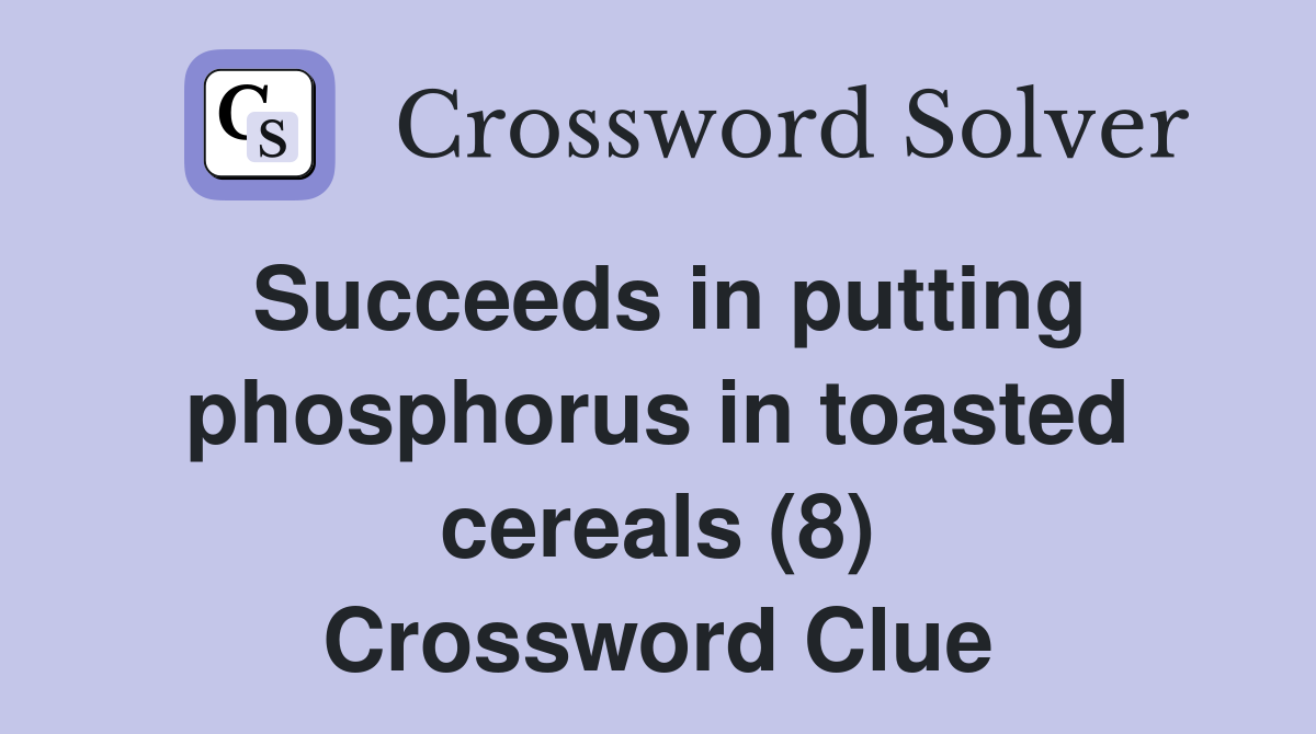 Succeeds in putting phosphorus in toasted cereals (8) Crossword Clue