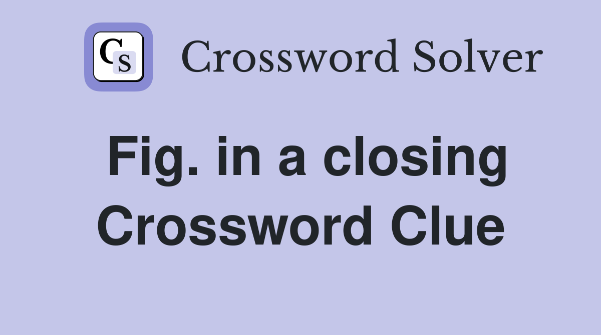 Fig in a closing Crossword Clue Answers Crossword Solver
