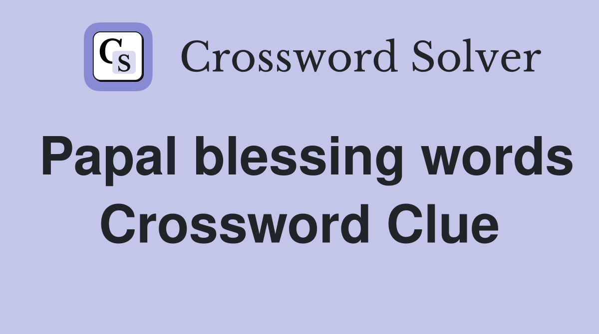 Papal blessing words Crossword Clue Answers Crossword Solver