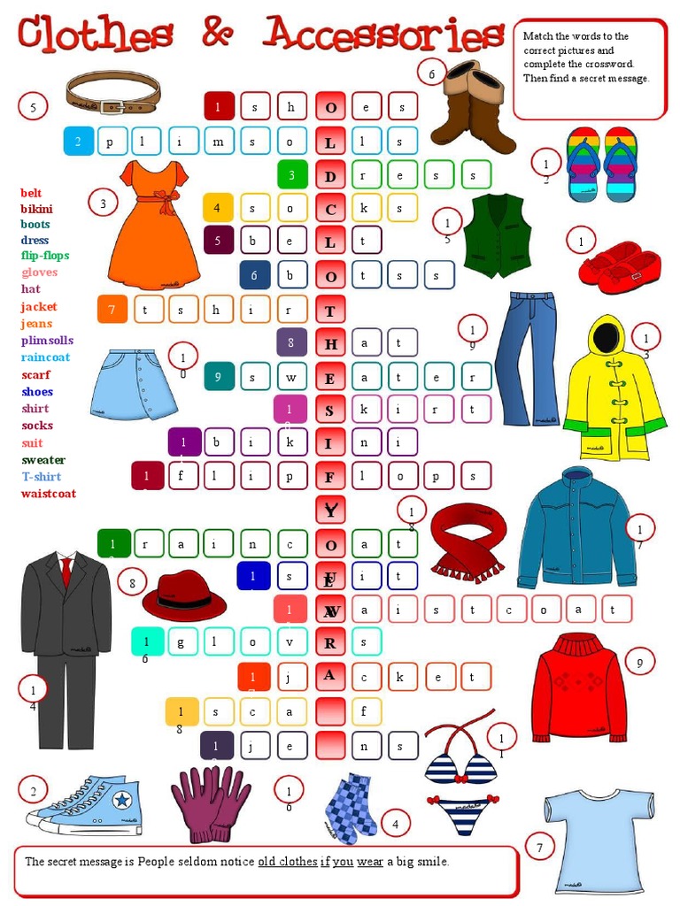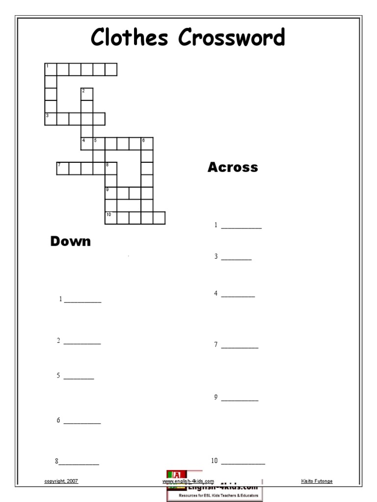 CLOTHES CROSSWORD ESL worksheet by teacherampi