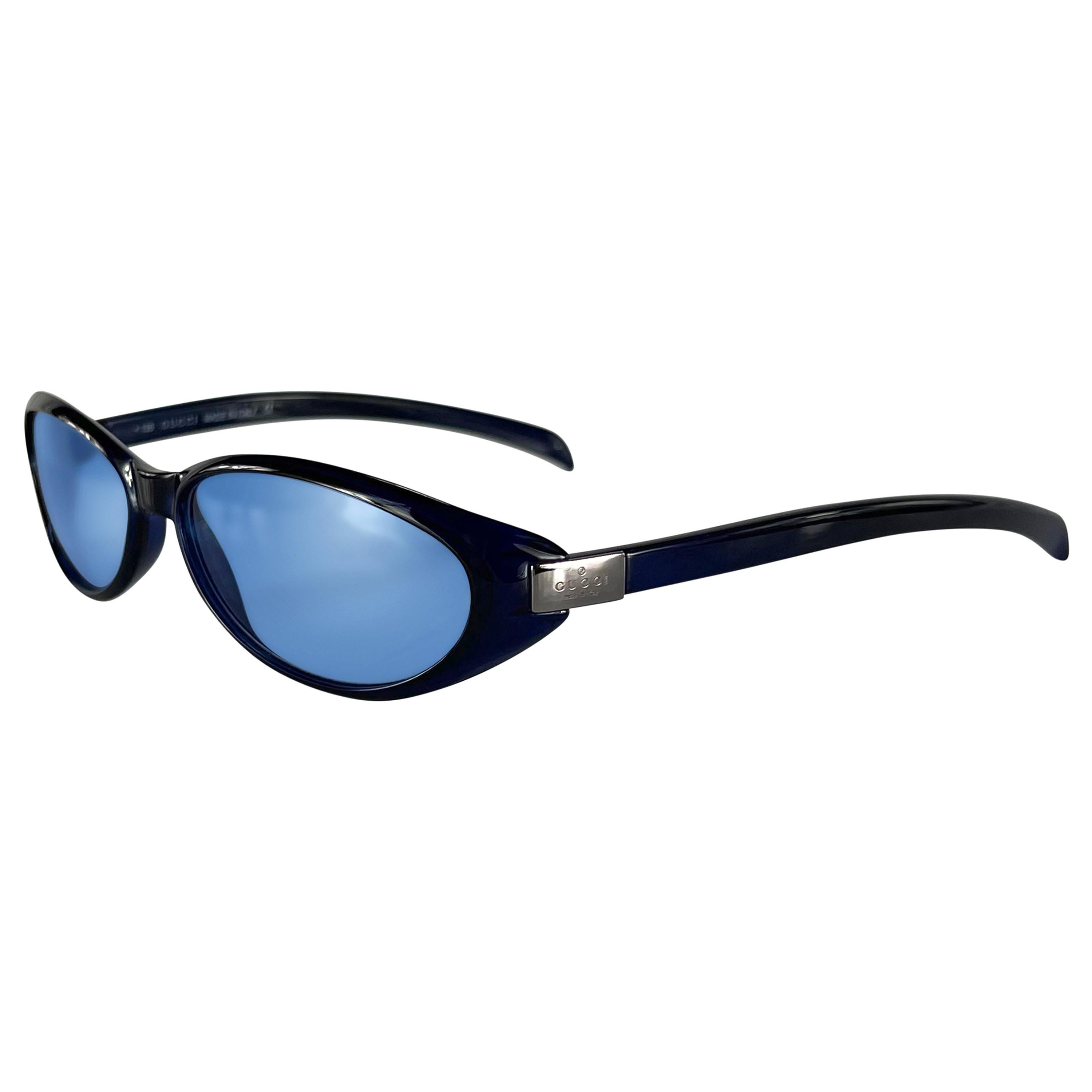 1990s Gucci by Tom Ford Thin Frame Deep Blue Logo Oval Sunglasses For