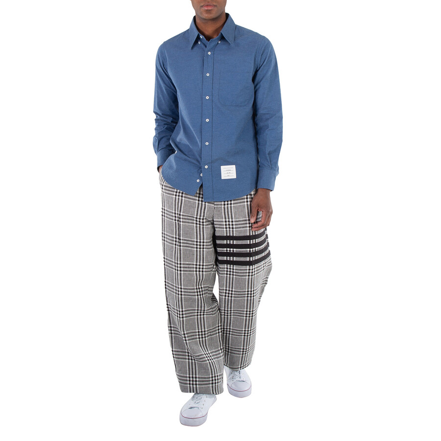 Thom Browne Men #39 s Deep Blue Logo Patch Denim Shirt Brand Size 2
