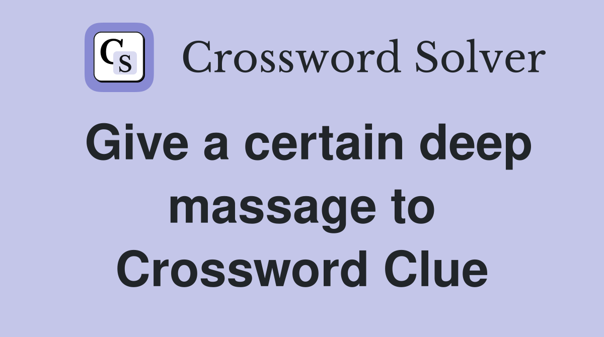 Give a certain deep massage to Crossword Clue Answers Crossword Solver